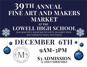 Save the date and join us in celebrating the 2025 holiday season while supporting local talent and small businesses. We can't wait to welcome you back to the Fine Art & Makers Market at the Lowell High School!